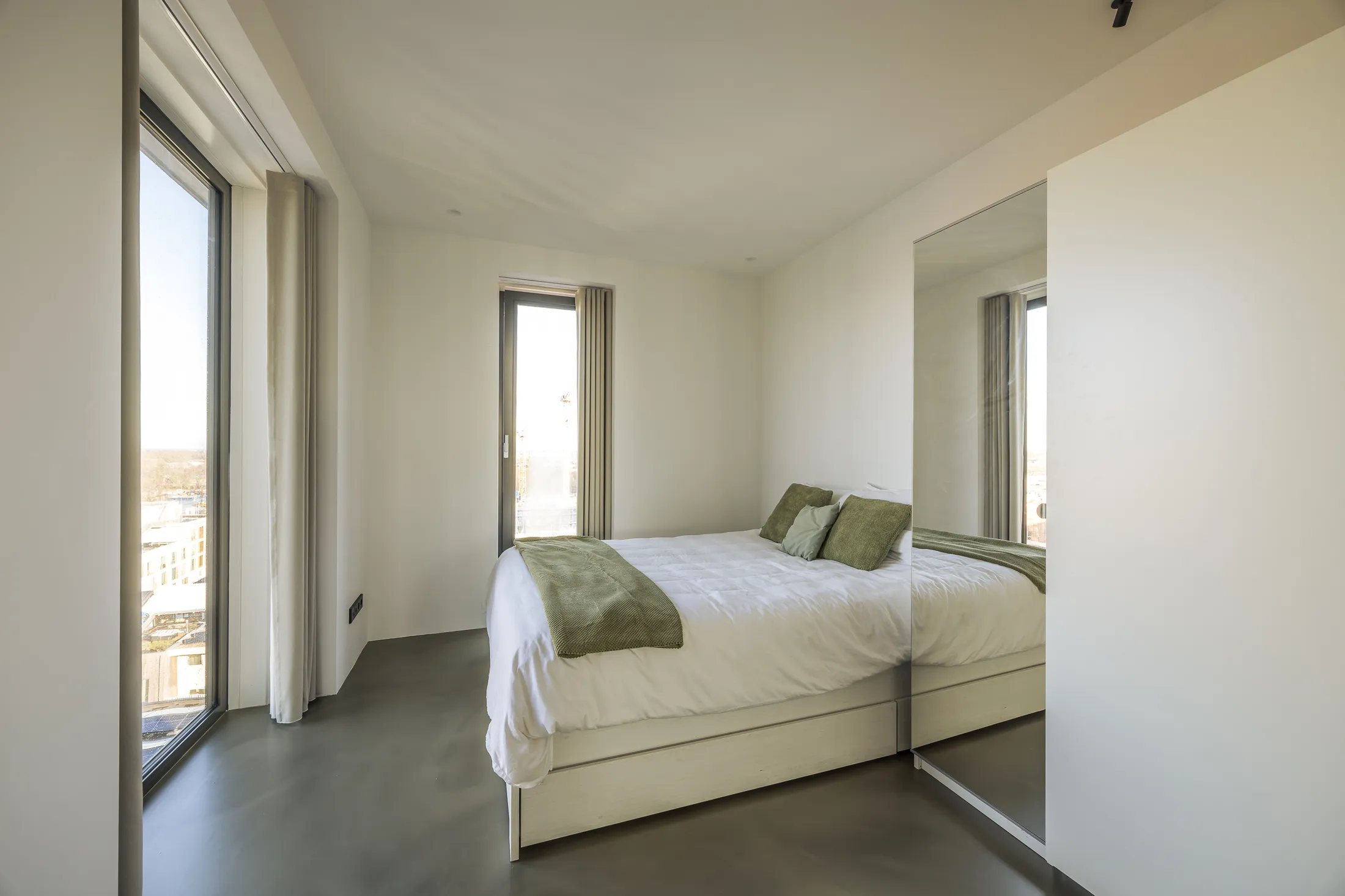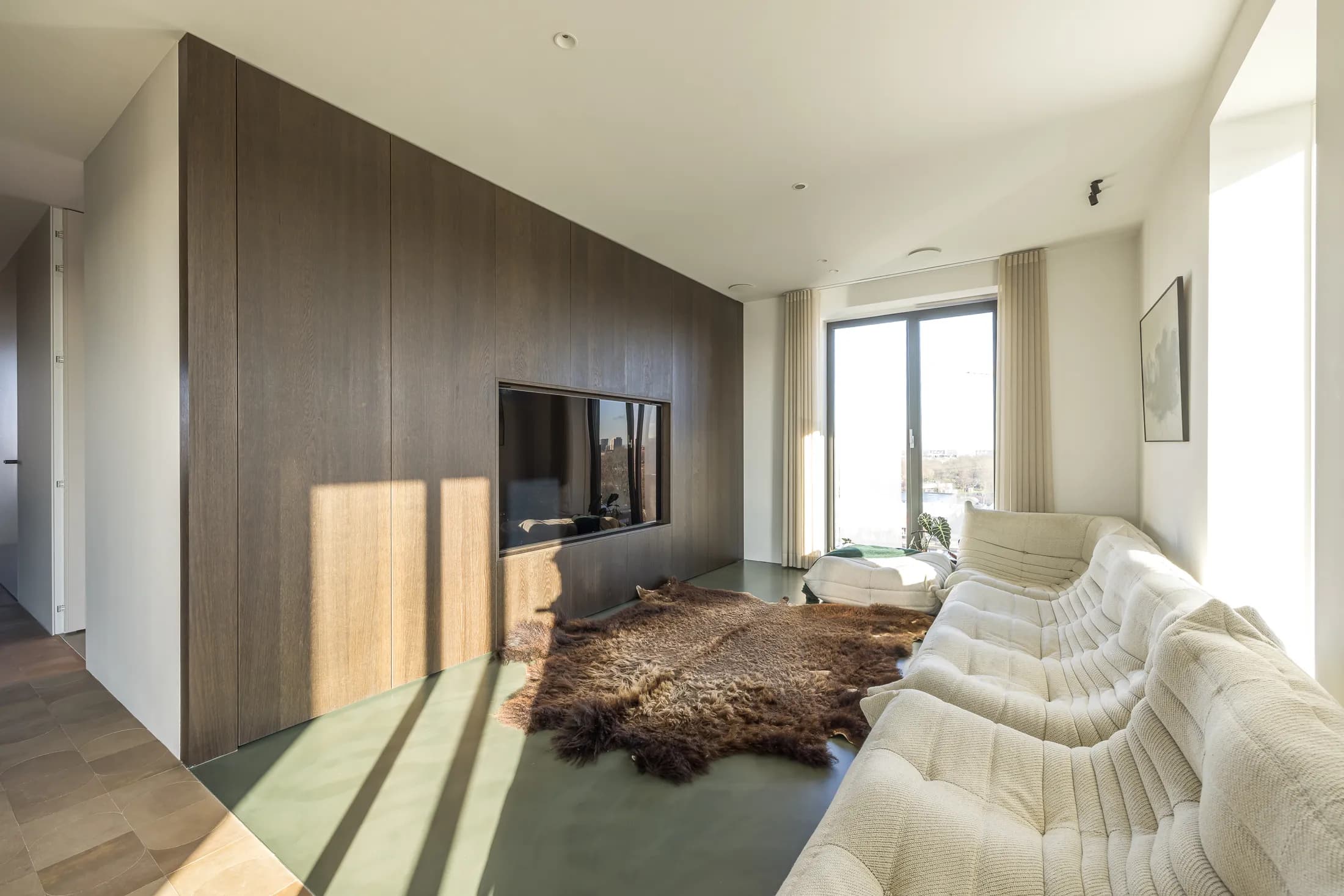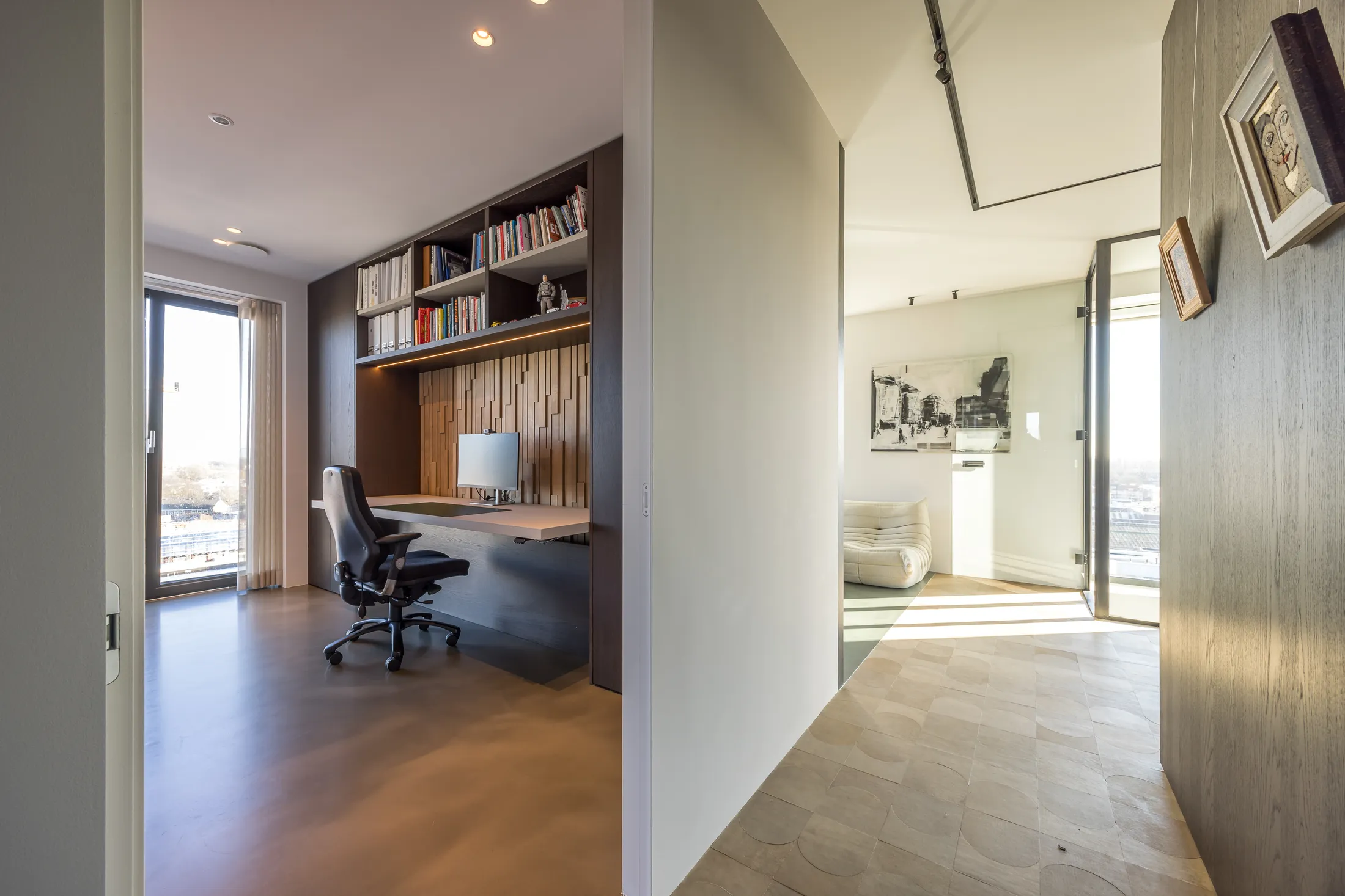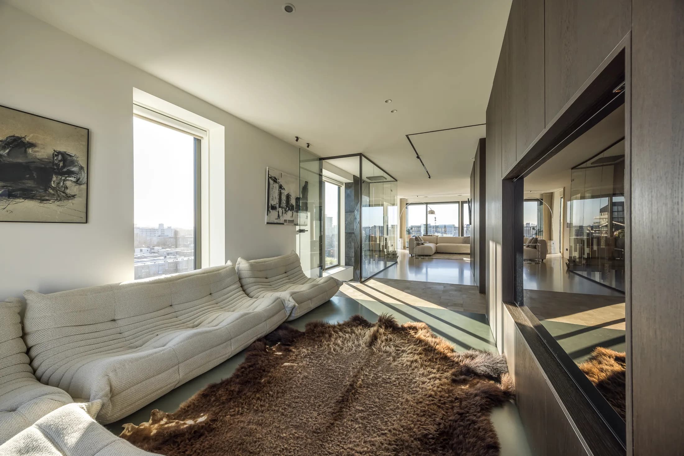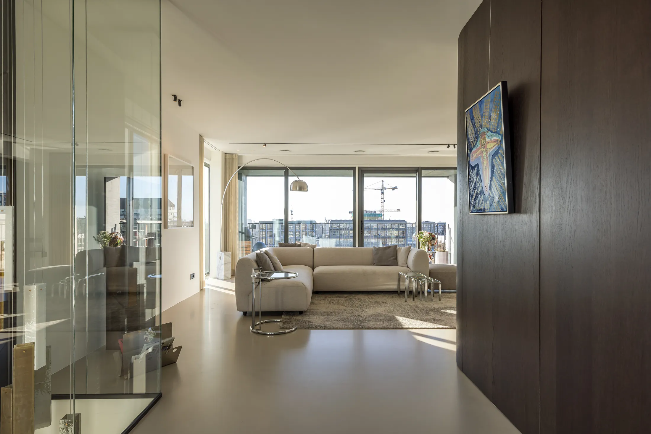 Een penthouse met adembenemend uitzicht vraagt om een interieur dat de aandacht niet afleidt maar juist versterkt. Voor dit project kozen we bewust voor een palette van warme neutralen, natuurlijke materialen en strakke lijnen. Het resultaat is een ruimte die sereen aanvoelt en waarin elk detail bijdraagt aan het totaalplaatje.
